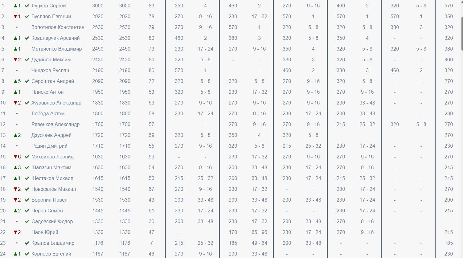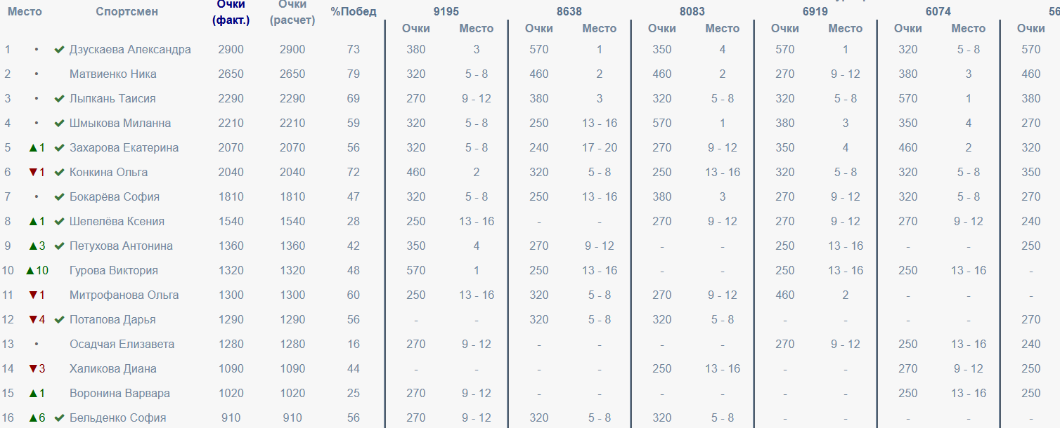 8 этапов Кубков России сформировали участников декабрьских финалов и отобрали 12 лучших на высшую лигу 6 декабря.