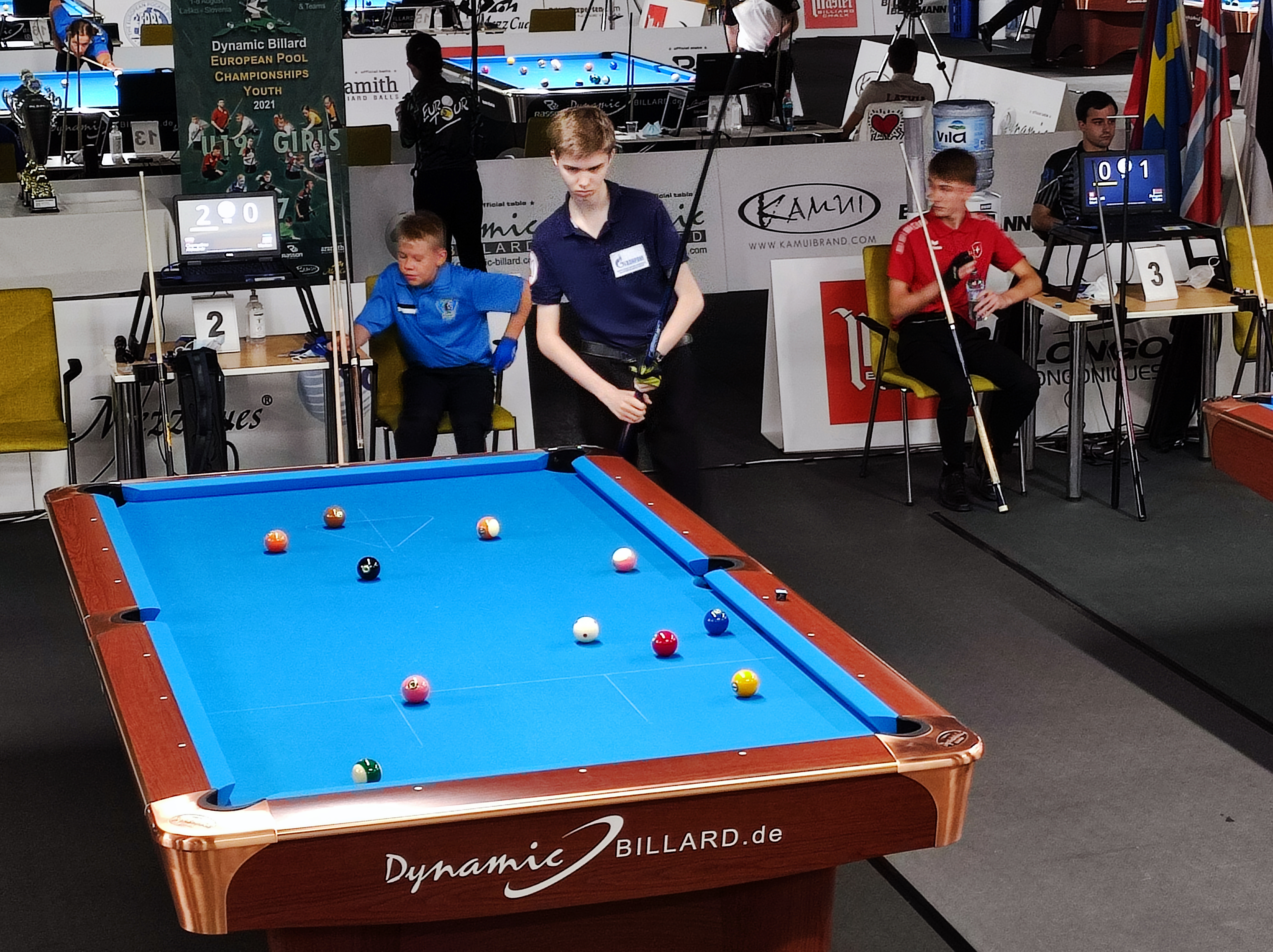 В 13.00 начинаются матчи 1/8 10-ball. В старшей группе у нас играет Арсений Ковалерчик причём он уже второй раз за день будет играть норвежцем Гангфлотом. Будет очень не простой матч.