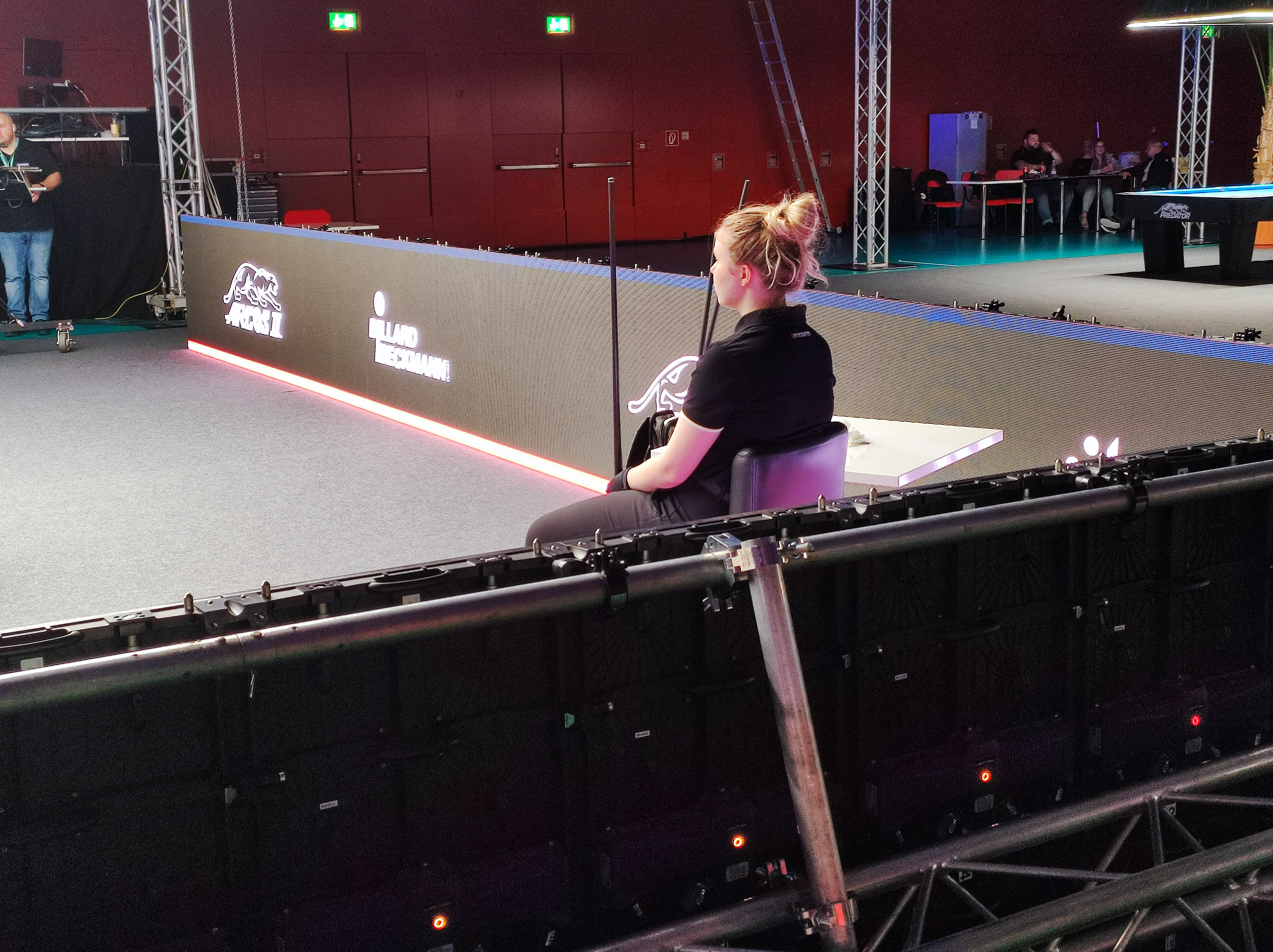 Александра выигрывала в своём матче 4-0, но затем уступила 4-7. Её игра завтра. Есть достаточно объективная причина тому, что она уступила в своём матче - она играла не своими киями. Так как её рейс был с пересадкой, то, к сожалению, а так бывает, не весь багаж прилетел в пункт назначения.