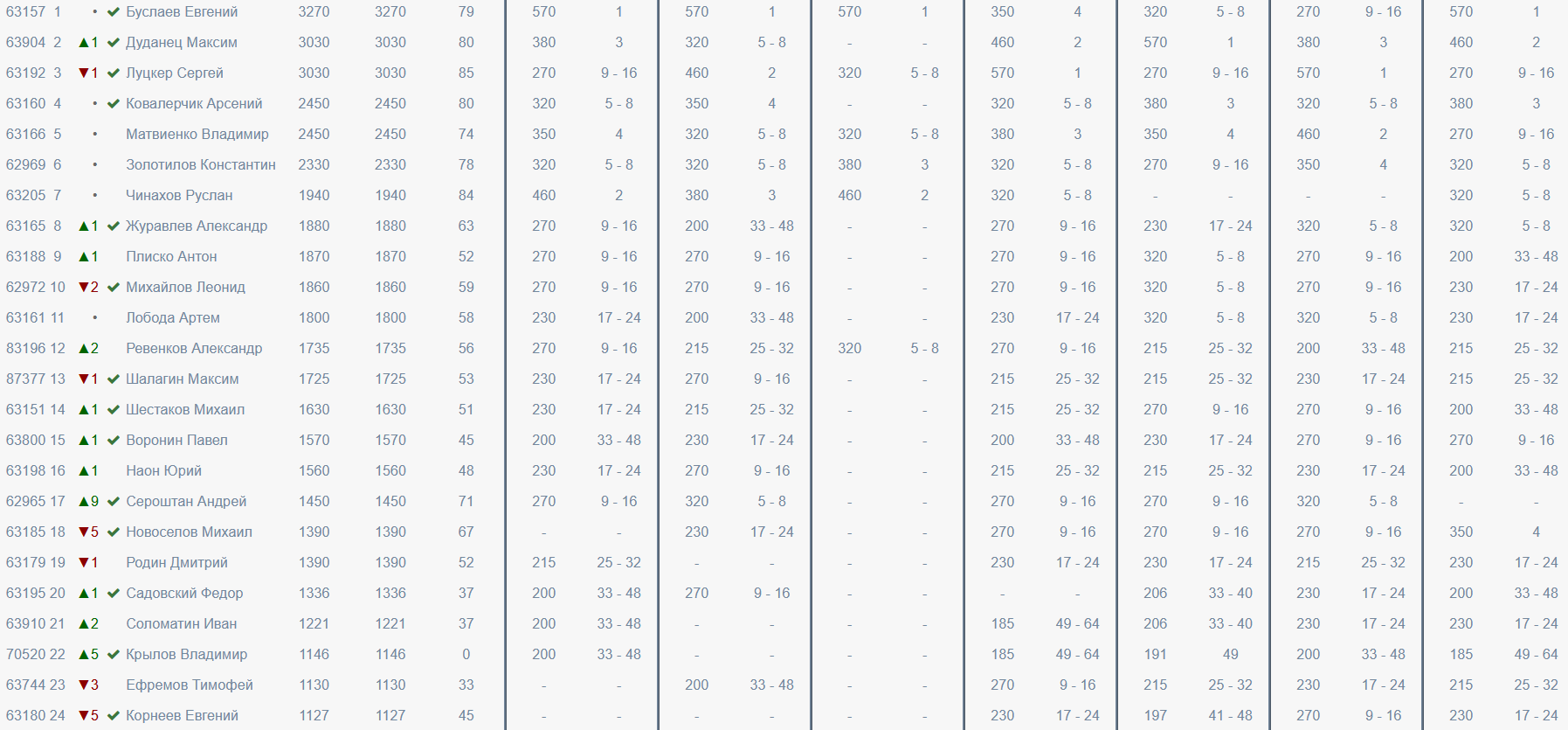 После победы Евгения Буслаева мужской рейтинг обновился.
