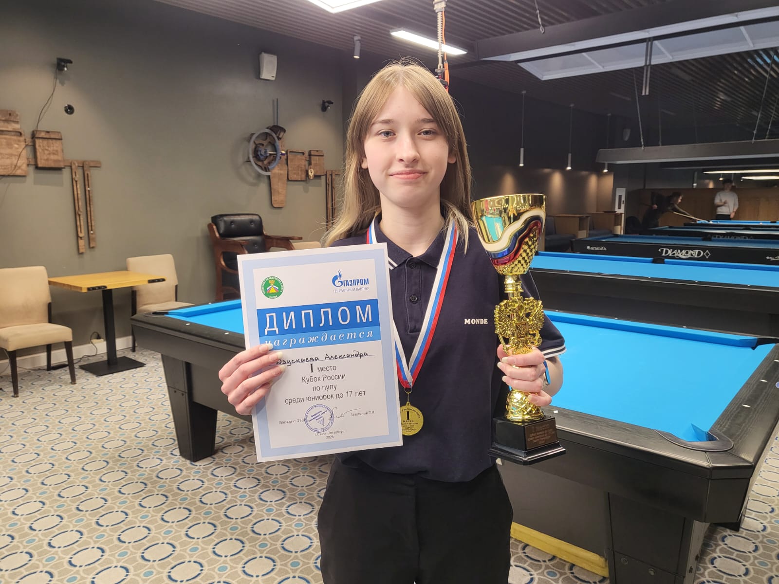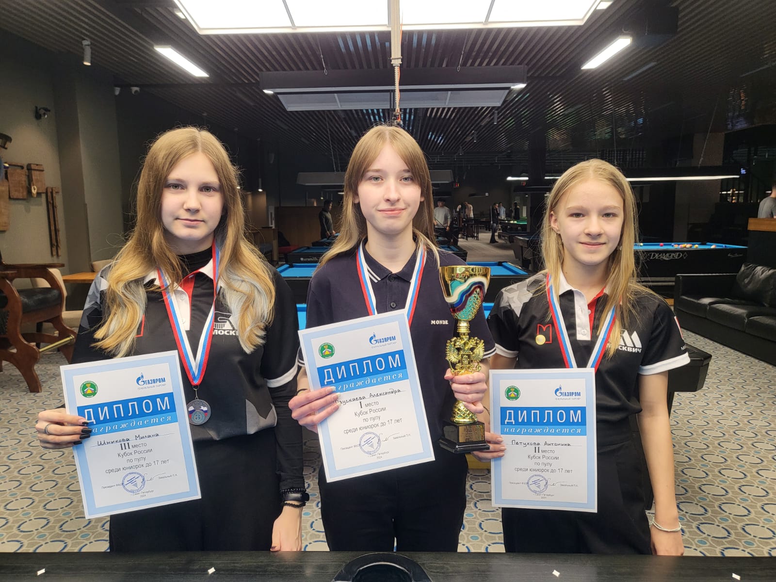 В первые выходные апреля в С. Петербурге, в клубе PlayPool пройдет 3 этап Кубка России U17 среди юношей и девушек. Турнир определит новых лидеров молодежного рейтинга. Напомним, что сейчас среди девушек первое место у Таисии Лыпкань из Москвы, среди юношей у Даниила Воронько из Белоруссии.