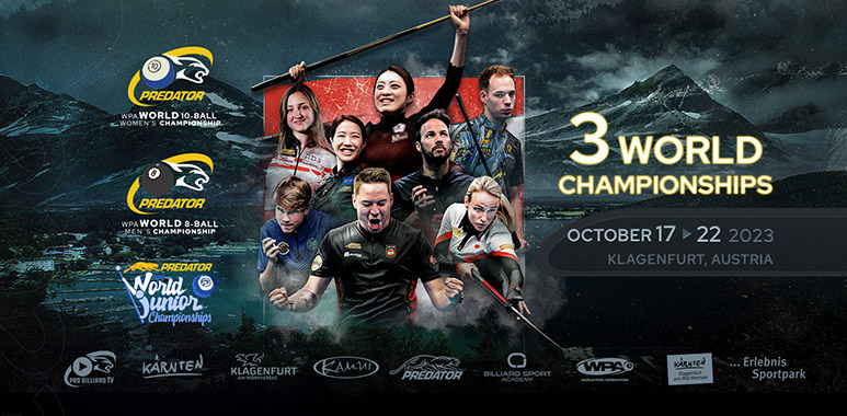 Пять новых чемпионов мира WPA будут коронованы в Австрии на этой неделе, поскольку Клагенфурт принимает у себя более 200 звезд бильярда со всего мира, а на кону 400 000 долларов.