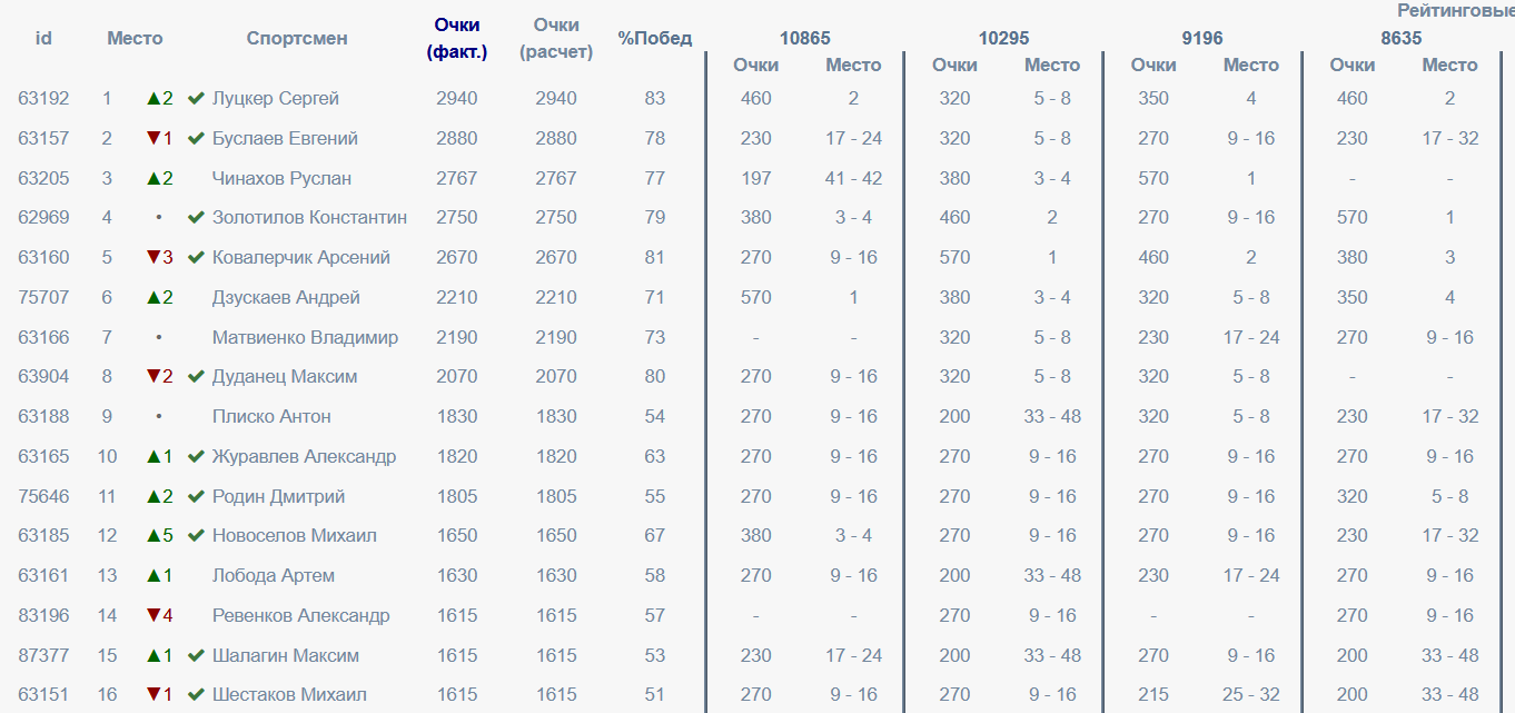 Публикуем обновленный рейтинг. В мужском дивизионе изменение лидера... В женском стабильность
